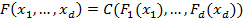 Als Ausgangssituation stellen wir uns d Risiken vor, die jeweils als Zufallsvariable modelliert werden. Nehmen wir an, wir kennen für jedes Risiko die univariate Verteilungsfunktion und bezeichnen diese mit . Dieses Wissen allein reicht uns aber keinesfalls aus, um die gemeinsame Verteilungsfunktion zu bestimmen, da uns noch alle Informationen um die Abhängigkeit zwischen den Einzelgrößen fehlen. Wichtige Struktur liefert hierfür der Satz von Sklar. Dieser besagt, dass jede multivariate Verteilungsfunktion F in eine Copula C (eine Funktion, die selbst eine Verteilungsfunktion auf dem d-dimensionalen Einheitskubus mit uniformen Rändern ist) sowie die Randverteilungen aufgespalten werden kann. Die Randverteilungen werden dabei als Argumente in die Copula eingesetzt und man erhält so die gemeinsame Verteilung, das heißt . Dies ist in vielen Situationen sehr angenehm, da es die oft sehr komplizierte Untersuchung der gemeinsamen Verteilungsfunktion separiert in eine Untersuchung der Randverteilungen einerseits und der Copula andererseits; in letzterer sind alle Informationen über die Abhängigkeit kodiert. Umgekehrt lässt sich aus beliebigen Randverteilungen und einer beliebigen Copula stets eine (mathematisch korrekte) multivariate Verteilungsfunktion konstruieren. Dieser Zusammenhang ist sehr beliebt in der Modellbildung und daher weit verbreitet, da er ein einfaches Bauprinzip zur Verknüpfung von Einzelrisiken darstellt. Auch lässt sich mittels dieses Bauprinzips leicht eine multivariate Verteilung simulieren. Dazu muss lediglich eine Stichprobe gemäß der Copula simuliert werden und diese dann mit Hilfe der univariaten Quantilsfunktionen umtransformiert werden. Leider weniger bekannt ist die Tatsache, dass wenn die Copula unpassend zum entsprechenden Problem (und den typischerweise vorab spezifizierten Randverteilungen) ausgesucht wird, zwar eine mathematisch korrekte gemeinsame Verteilung spezifiziert wird, diese aber keinesfalls ökonomisch sinnvoll oder problemadäquat sein muss. Oft werden schlichtweg die bekanntesten Copulas (Gauß-Copula, Archimedische Copulas, …) herangezogen, ohne deren Eigenschaften und Auswirkungen für das aktuelle Problem genau zu hinterfragen.