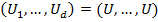 5. Negative Abhängigkeiten für . Während man für die vollständige Abhängigkeit einer Copula in beliebiger Dimension eine sehr einfache Motivation hat (die Komponenten sind fast sicher identisch, also, die gemeinsame Copula ist ) ist dies für negative Abhängigkeiten nicht der Fall. Starten wir bei Dimension 2. Hier ist negative Abhängigkeit noch einfach zu definieren, die erste Komponente sei dazu . Dann ist die größtmögliche negative Abhängigkeit gerade , die gemeinsame Copula ergibt sich zu . In Dimension 3 (und darüber hinaus) ist es aber nicht mehr möglich Komponenten in maximal unterschiedliche Richtungen anzuordnen, weil es anwendungsabhängig verschiedene sinnvolle Definitionen für die Verschiedenheit dreier Richtungen gibt. Algebraisch gesprochen könnten wir versuchen die Funktion als natürliche Erweiterung der Copula der negativen Abhängigkeit zu betrachten. Diese Funktion, obgleich mathematisch relevant, ist selbst keine Copula mehr. Das heißt, es gibt keinen Zufallsvektor mit eben dieser Verteilungsfunktion.
