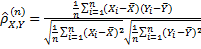2. Es gibt einen kanonischen und leicht verständlichen (sowie umzusetzenden) Schätzer für den Korrelationskoeffizienten, den "empirischen Korrelationskoeffizienten". Gegeben n unabhängige und gleichverteilte Stichproben eines Merkmals, ist dieser gegeben durch , wobei die Stichprobenmittelwerte der Komponenten bezeichnen. Dies ermöglicht es auf einfache Art und Weise ein Maß für die Abhängigkeit gegebener Daten zu berechnen.