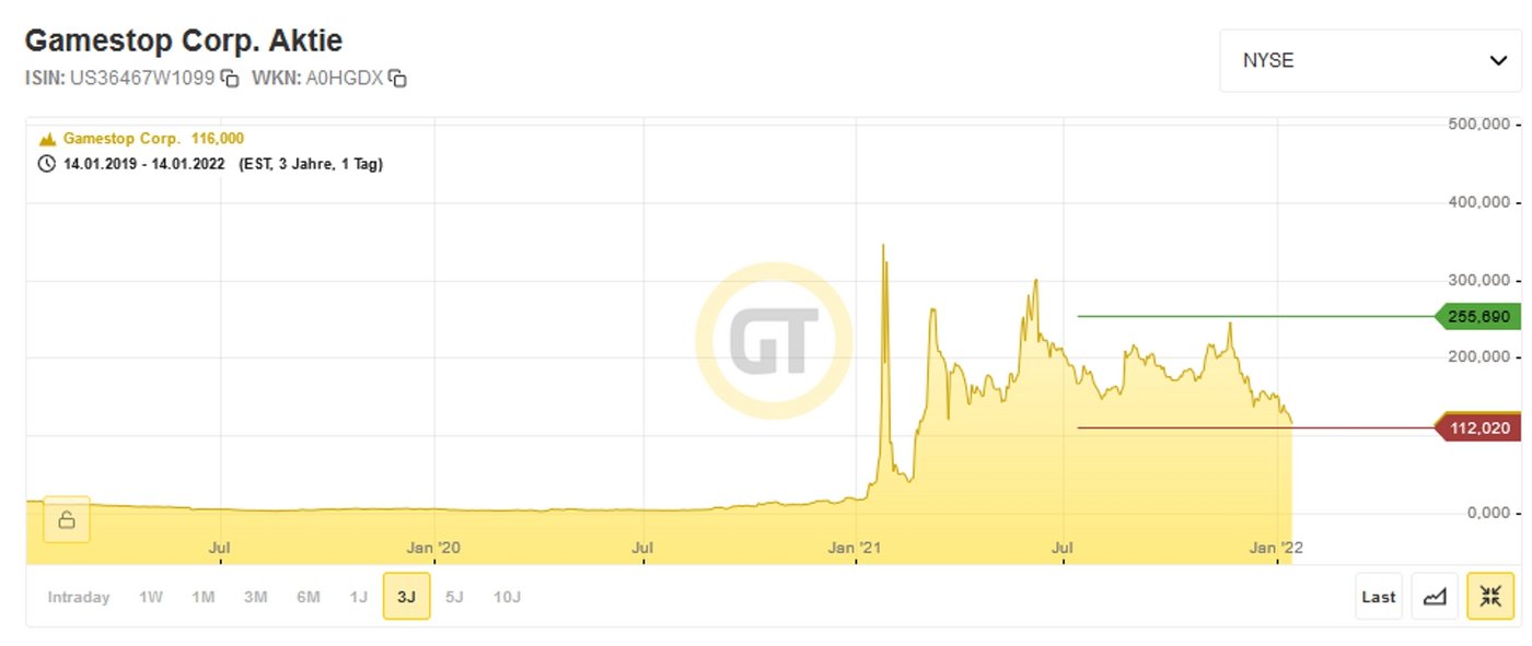 Abb.02: Kursentwicklung GameStop Corp. (15.01.2019-14.01.2022)