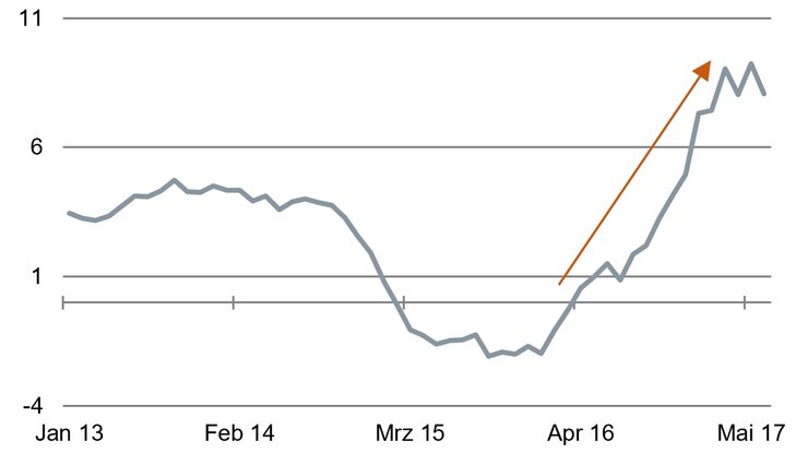 Zu Trump: Ein Jahr nach seiner Wahl scheinen sich viele mit ihm zu arrangieren. Er wird zwar nicht geliebt. Viele sind aber stolz, dass das amerikanische politische System auch einen solchen Präsidenten aushält. Sein Plus ist, dass er die Wirtschaft in Ruhe lässt. Manche seiner Positionen werden übernommen. Zum Beispiel widerspricht heute niemand mehr der These, dass NAFTA neu verhandelt werden muss. Gefährlich könnte es sein, wenn eines der weltweiten politischen Risiken virulent wird. Dann ist man sich nicht sicher, ob er beruhigend wirken würde, oder ob er die Krise nicht noch verstärkt.