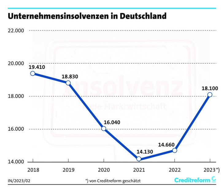 Das endgültige Ende des paradoxen Insolvenzgeschehens der Corona-Jahre ist eingeläutet. Die multiplen Krisen schlagen auf Unternehmen und Verbraucher gleichermaßen durch. Hohe Kostenbelastungen und die Rezession haben das Insolvenzgeschehen in Deutschland befeuert. 2023 stieg die Zahl der Unternehmensinsolvenzen deutlich um 23,5 Prozent auf 18.100 Fälle (2022: 14.660 Fälle). "Immer mehr Firmen brechen unter den Dauerbelastungen der hohen Energiepreise und der Zinswende zusammen", erläutert Patrik-Ludwig Hantzsch, Leiter der Creditreform Wirtschaftsforschung. Bereits im Vorjahr habe der Insolvenztrend nach elf Jahren rückläufiger Zahlen gedreht.