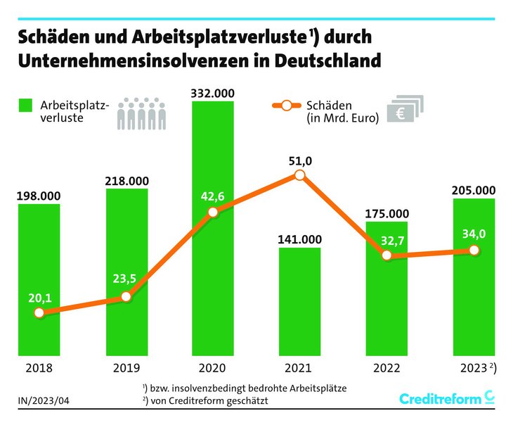 Abb. 05: Schäden und Arbeitsplatzverluste durch Insolvenzen [Quelle: Creditreform]