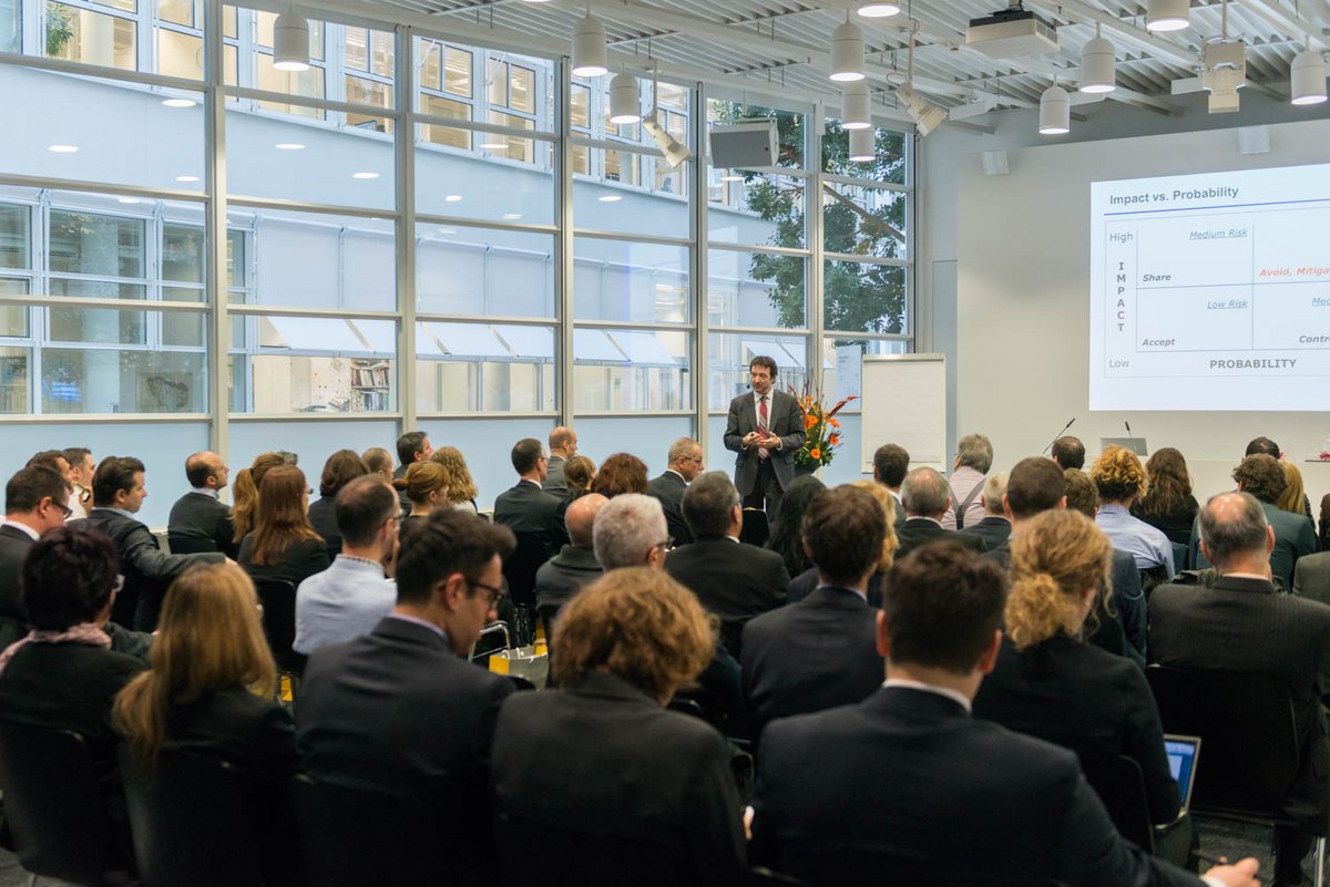 Die unterschiedlichen Praxisreferate zeigten auf, welche Themen einen Risk Manager aktuell beschäftigen. So stellte Mira Walther, Leiterin Konzernrisikomanagement bei der Schweizerischen Post ihren Risikomanagement-Ansatz vor, der in einem hohen Masse auf quantitativen Risikokennzahlen beruht. Spannend war zu sehen, wie die Schweizerische Post Risikomanagement tatsächlich zur Konzernsteuerung nutzt. Trotz allen Kennzahlen darf aber aus Sicht von Walther auch die qualitative Komponente nicht zu kurz kommen. Hierbei betonte sie vor allem die Relevanz eines intensiven Austausches auf allen Ebenen im Konzern um als Risikomanagerin zu verstehen, "was den Dampfer tatsächlich beeinflusst".