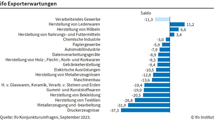 Abb: ifo Exporterwartungen nach Branchen [Quelle: ifo Institut 2023]