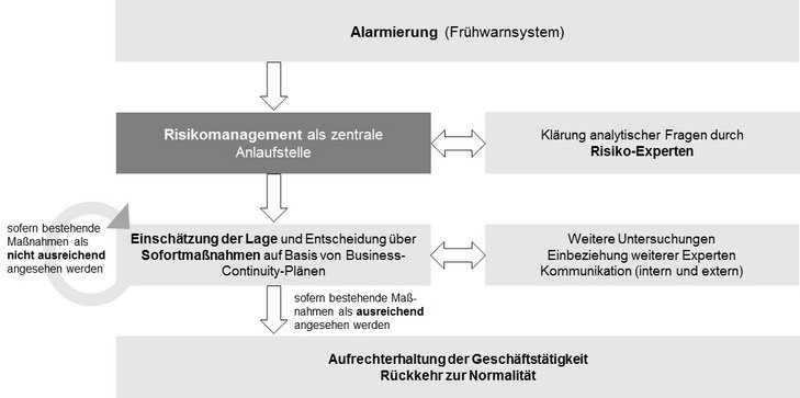 Abb. 01: Im Krisenfall stellt ein standardisiertes Vorgehen analog zu Einsatzplänen im Katastrophenschutz eine konzertierte Aktion auf Konzernebne sicher