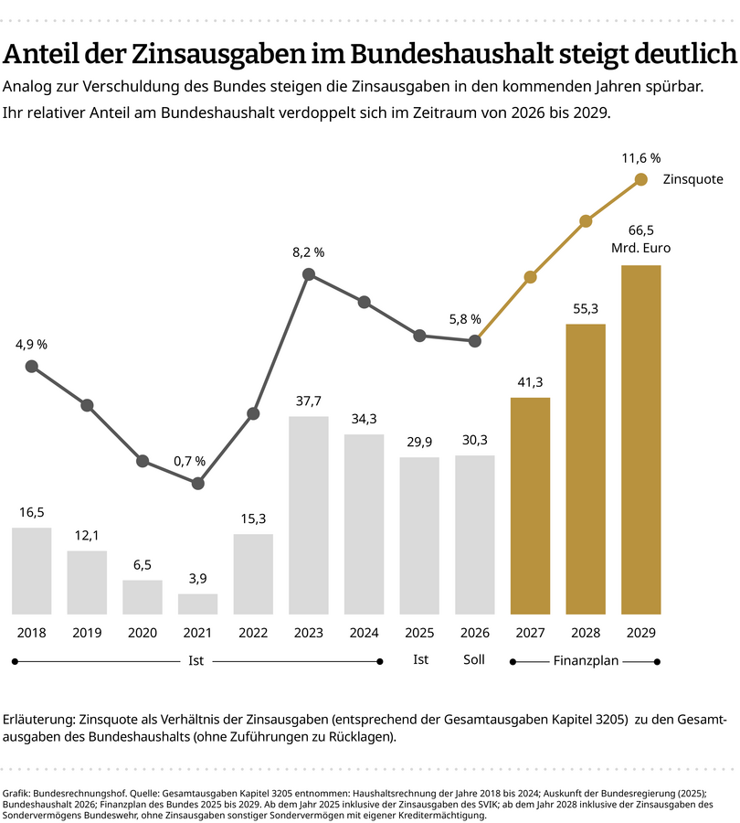 ![Abb. 02: Anteil der Zinsausgaben im Bundeshaushalt [Quelle: Bundesrechnungshof] Abb. 02: Anteil der Zinsausgaben im Bundeshaushalt [Quelle: Bundesrechnungshof]](/fileadmin/_processed_/8/8/csm_Abb-02_Bunderechnungshof_20260421_915fbc3c68.png)