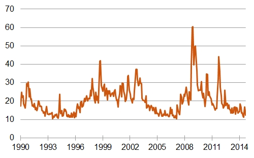 ![Die gemessene Angst: Volatility S&P 500 (VIX) [Quelle: Bloomberg] Die gemessene Angst: Volatility S&P 500 (VIX) [Quelle: Bloomberg]](/fileadmin/user_upload/News/2014/Abb-01-Huefner-2014-10-02.jpg)