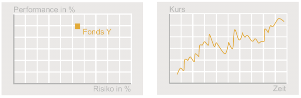 Um den Zusammenhang zwischen Risiko und Renditeerwartung abzubilden, können beide Parameter im Risiko-/Performance-Diagramm (siehe Abbildung) dargestellt werden. Die Performance ist auf der Ordinate, das Risiko auf der Abszisse abgebildet. Das bedeutet: je weiter links, desto risikoärmer ist die Anlage, je weiter oben, desto höher ist die Performance. In diesem Kontext beschreiben die „Performance“ die Renditechance und das „Risiko“ das potenzielle Verlustrisiko einer Anlage. Das Risiko einer Anlage lässt sich an den Kursschwankungen erkennen.