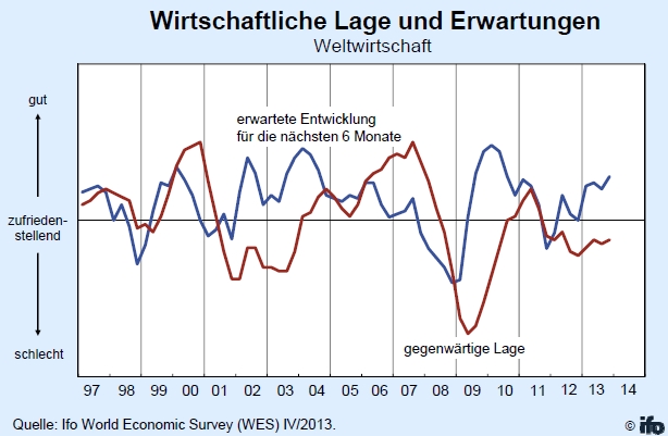 Seit dem Jahr 1981 befragt das ifo Institut im vierteljährlichen Turnus Experten aus einer Vielzahl von Ländern zur Konjunkturentwicklung und zu anderen Wirtschaftsdaten in ihrem jeweiligen Beobachtungsgebiet. An der jüngsten Erhebung im Oktober 2013 nahmen 1.091 Experten aus 120 Ländern teil. Die Umfrage wird in Zusammenarbeit mit der Internationalen Handelskammer in Paris (ICC) durchgeführt.