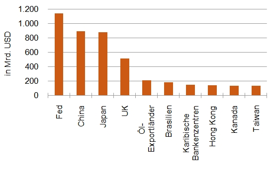 Die amerikanische Zentralbank kauft US-Staatsanleihen im Rahmen ihrer Offenmarktpolitik, um dem Markt weiter Liquidität zuzuführen. Inzwischen hält die Fed über USD 1.100 Mrd. an Anleihen und Geldmarktpapieren, während China "nur" knapp USD 900 Mrd. besitzt. Im Rahmen des "Quantitative Easing" wird versucht die Geldmenge zu erhöhen, da das dafür eigentlich vorgesehene Instrument der Leitzinssenkung angesichts Zinsen nahe Null seine Wirksamkeit verloren hat.