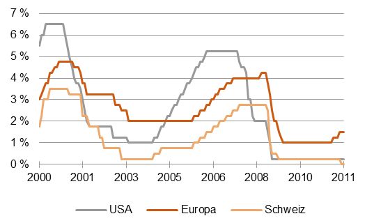 Abbildung: Die ultralockere Geldpolitik (Leitzinsen in %, Quelle: Bloomberg)