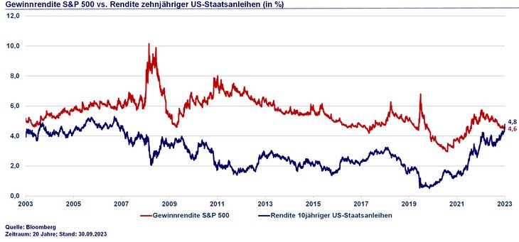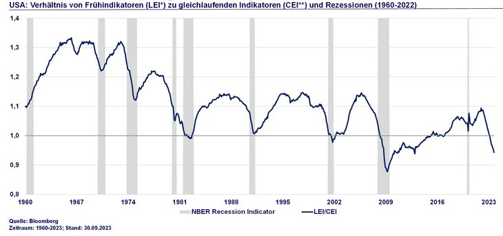 Jedoch laufen viele der bislang stützenden Effekte aus. In der Vorausschau warnen Zinskurveninversion und rückläufige Frühindikatoren für die USA bereits seit geraumer Zeit vor konjunkturellen Abwärtsrisiken. Dieser Negativausblick wird u.a. bestätigt durch schwache Auftragseingänge, schwindende Ersparnisse und die anstehende Wiedereinsetzung der Rückzahlungspflicht für Studienkredite. In zahlreichen Quartalsberichten konsumorientierter US-Unternehmen zeigt sich eine Erschöpfung der Verbraucher. Viele Ergebnisverfehlungen und Gewinnenttäuschungen mischen sich mit zurückhaltenden Ausblicken. Berichte über vermehrtes "trading down", ein also zunehmend frugales Kaufverhalten, zeichnen dabei ein ebenso wenig optimistisches Bild wie vermehrte Ergebnisbelastungen der Einzelhändler durch gestiegene Ladendiebstähle.