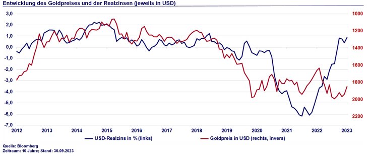 - Der Goldpreis ist fest, obwohl die Realzinsen deutlich gestiegen sind