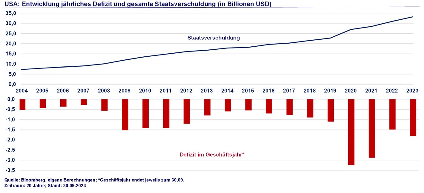 Abb. 12: Die US-Staatsverschuldung hat sich seit der Finanzkrise mehr als verdreifacht [Bloomberg, eigene Berechnungen]