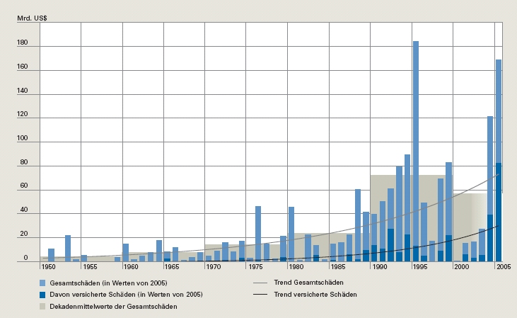 Bereits seit Jahrzehnten untersuchen führende wissenschaftliche Einrichtungen die Prozesse, die von einer steigenden Konzentration klimaschädigender Spurengase in der Atmosphäre ausgelöst werden. Bereits vor dem Rekordschaden aus Hurrikan Katrina wurden Studien publiziert, die sich mit der veränderten Hurrikangefährdung im Nordatlantik befassten - vor dem Hintergrund der natürlichen wie auch der menschgemachten Einflüsse auf die Meeresoberflächentemperatur. Die Aussagen dieser Untersuchungen sind so konkret, dass beispielsweise die Rückversicherer einen quantifizierbaren Anpassungsbedarf der Hurrikan–Risikomodelle ableiten konnte.