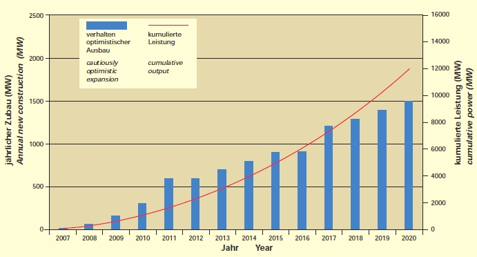 Abbildung: Prognose für den Ausbau der Windenergienutzung auf See. Verhalten optimistischer Ausbau (Deutsche WindGuard)