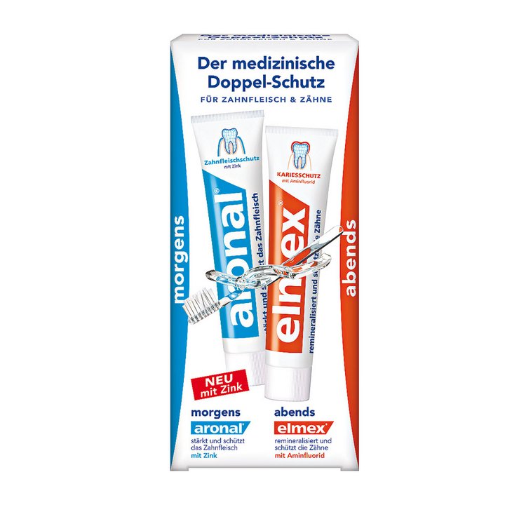 Abb. 17 und 18: Mit zwei klaren Nutzen-Eigenschaften positionierten sich Odol-med3- "3fach-Schutz" und Elmex/Aronal- "Medizinischer Schutz morgens & abends" gegen Blend-a-med und gewannen den Kampf um die Wahrnehmung durch den Kunden. [Bildquellen: Odol, Garba]