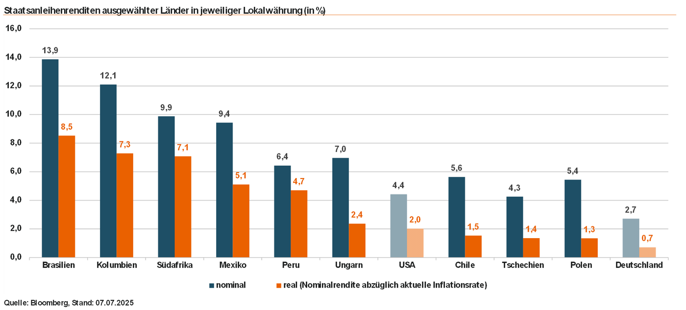 Abb. 03: Schwellenländer bieten teils erheblich höhere nominale und reale Renditeniveaus