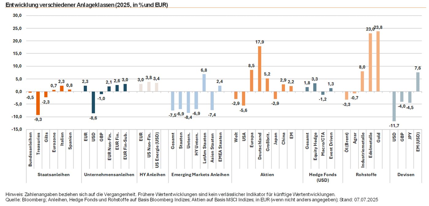 Abb. 01: Entwicklung verschiedener Anlageklassen in 2025