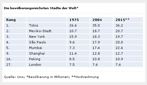 Egal, ob Tokio, Mumbai (das frühere Bombay), Shanghai, Moskau, São Paulo, Lagos oder Mexiko-Stadt – die bevölkerungsreichsten Metropolen der Welt haben sich in den letzten 30 Jahren zu Megastädten, also mit einer Einwohnerzahl von zehn Millionen oder mehr, entwickelt. Die Verlockungen eines höheren Lebensstandards, das Verlangen der Menschen nach größerer Mobilität und die Hoffnung auf Arbeit haben die Anziehungskraft solcher Städte dramatisch in die Höhe getrieben. Tatsächlich lebt die Hälfte der Weltbevölkerung heute in Städten. Im Jahr 2030 wird diese Zahl laut Berechnungen der Vereinten Nationen die 60-Prozent-Marke erreichen. Das exponentielle Wachstum zwingt die Megastädte nun, sich gewaltigen Herausforderungen zu stellen. São Paulo und Johannesburg sind berüchtigt für ihre hohen Kriminalitätsraten. Moskau und Tokio befinden sich jeweils im Zustand eines permanenten Verkehrskollapses. New York und London werden immer wieder von ethnischen Unruhen heimgesucht. "Die Bevölkerungsexplosion hat zu einer Notsituation geführt. Überall werden Städte von Armut, Korruption, Kriminalität und Gewalt geplagt", sagt