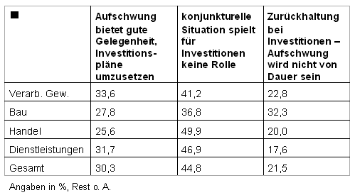 Tab. 2: Einfluss des konjunkturellen Aufschwungs auf die Investitionspläne