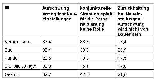 Tab. 3: Einfluss des konjunkturellen Aufschwungs auf die Personalplanung