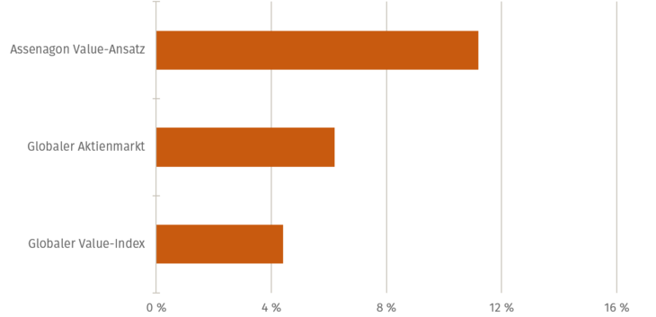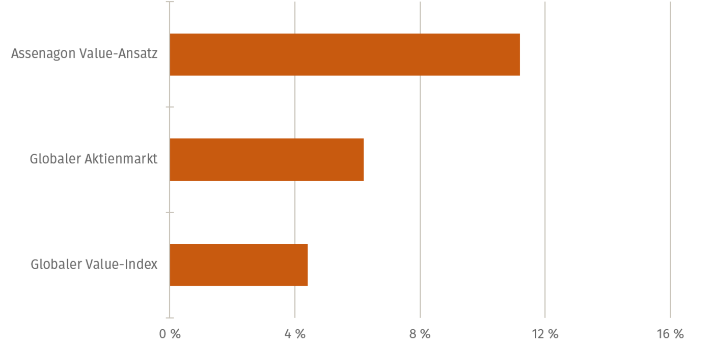 Abb. 02: Bewertungsaufschlag relativ zum globalen Value-Index [Quelle: Assenagon, Bloomberg; Stand: März 2021]