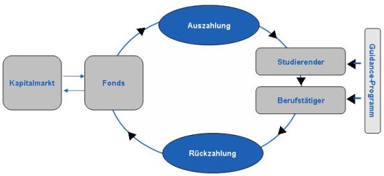 Die Idee eines Studienfonds besteht in der Förderung von Studierenden während des Studiums und der ersten Berufsjahre. Der Studienfonds schließt hierzu mit ausgewählten Studierenden eine Fördervereinbarung ab, in der sich der Fonds verpflichtet, den Geförderten über einen bestimmten Zeitraum eine monatliche finanzielle Förderung sowie nicht-monetäre Zuwendungen (beispielweise in Form von Workshops oder Vermittlung von Praktikumsplätzen) zu gewähren. Im Gegenzug dafür werden nach Studienabschluss die Geförderten einen prozentualen Anteil ihrer Bruttoeinkünfte über einen in der Fördervereinbarung geregelten Zeitraum leisten. Im Ergebnis sind die Anleger des Studienfonds wirtschaftlich am späteren beruflichen Erfolg der Geförderten beteiligt. Als Investition in Humankapital eröffnet ein Studienfonds im Kapitalmarkt somit eine gänzlich neue Asset-Klasse (vgl. Abbildung unten).