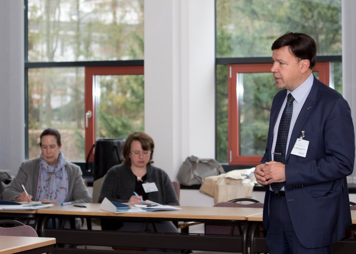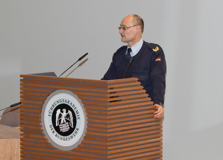 Brigadegeneral Thomas Hambach, Direktor Lehre an der Führungsakademie der Bundeswehr, eröffnet das 7. Forum "Zukunftsorientierte Steuerung"