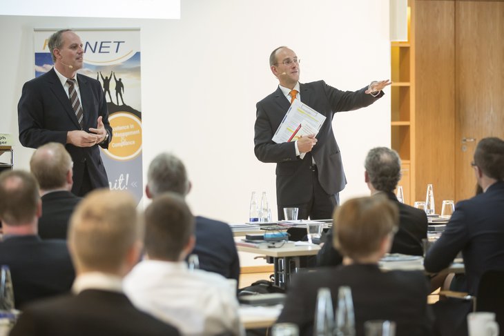 Christoph Schwager und Frank Romeike während ihres Vortrags zur "Logik des Misslingens"