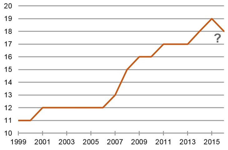 Immer mehr Länder im Euro? Zahl der Mitglieder in der Währungsunion [Quelle: EZB]