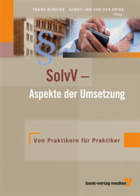 In der aktuellen Publikation "SolvV - Aspekte der Umsetzung", herausgegeben von Frank Romeike und Gerrit Jan van den Brink (Bank-Verlag Medien, Köln 2007) wurde bewusst davon abgesehen, jeden Paragraphen der SolvV einzeln zu behandeln und zu diskutieren. Vielmehr wurden in diesem Buch einige interessante und anspruchsvolle Themen aus der SolvV im Detail behandelt. So erhält der Leser einen guten Überblick über die Themen, die von einer besonderen Relevanz sind. Außerdem beinhaltet dieses Buch eine Reihe von praktischen Tipps für die Umsetzung der SolvV, die der Leser nutzbringend in seiner Organisation einbringen kann.