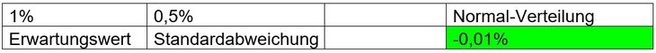 Im Rahmen der Szenarioanalyse wurden aus den in Risiko/Chance 01 bis Risiko/Chance 04 vorgenommenen Risikoeinschätzungen Zufallszahlen generiert (vgl. grüne Zellen, Abb. 04), die sich im Laufe der Simulation verändert haben. Mit Hilfe von Risk Kit wurden 50.000 mögliche Zukunftsszenarien unter Berücksichtigung der eingangs angesprochenen Parameter (Risikoeinschätzung und Verteilungsfunktion) berechnet.