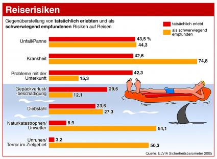 Häufigste und schwerwiegendste Risiken 2005 - so empfinden die Urlauber