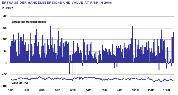 Im Jahr 2006 erzielten die Handelsbereiche der Deutschen Bank an über 96 Prozent der Handelstage (über 93 Prozent in 2005) einen positiven Ertrag. Darüber hinaus kam es an keinem Handelstag der beiden Jahre zu einem tatsächlichen Verlust, der die Value-at-risk-Prognose für diesen Tag übertraf.