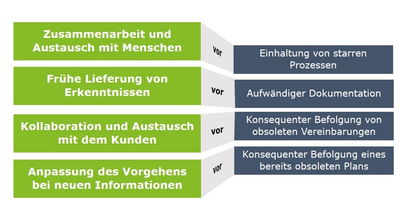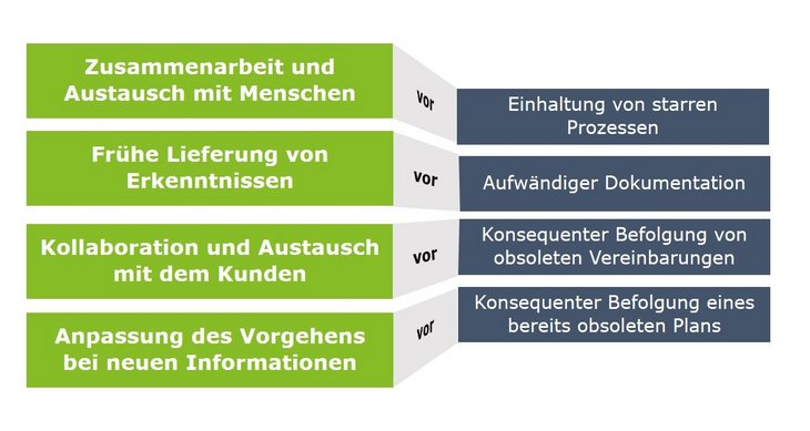 - Verinnerlichung der agilen Werte und Prinzipien und
