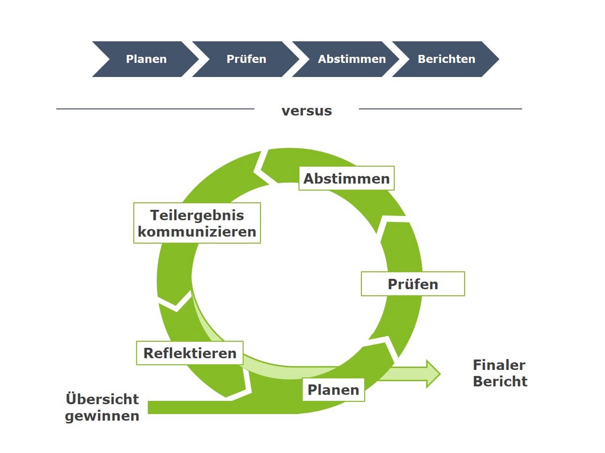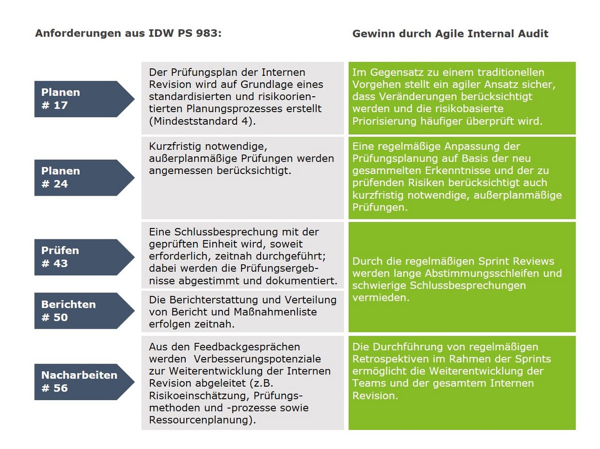 Abb. 05: Eine agile Arbeitsweise erfüllt nicht nur die Anforderungen des DIIR/ IDW, sondern bietet zudem Verbesserungspotenzial