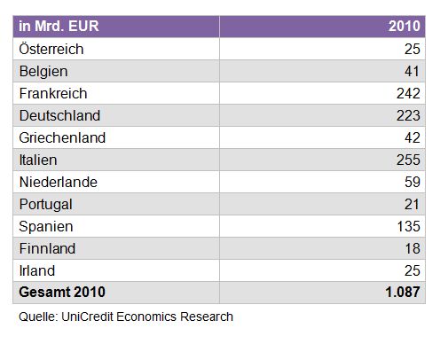 Abb. 4: Wer kann das bezahlen … Refinanzierungsbedarf in der Eurozone in 2010 (in Mrd. EUR)