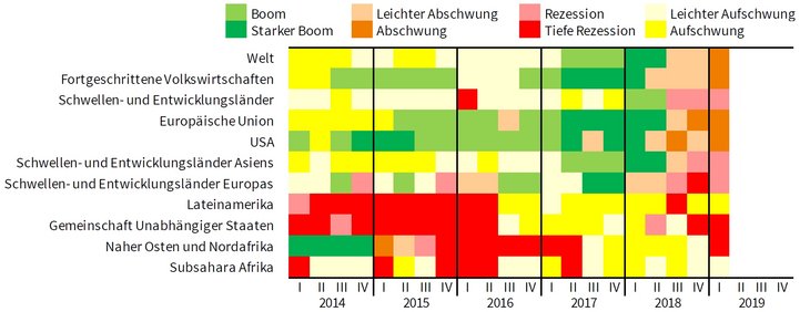 Visualisierung der Ergebnisse als Wärmebild [Quelle: ifo World Economic Survey (WES) I/2019. © ifo Institut]