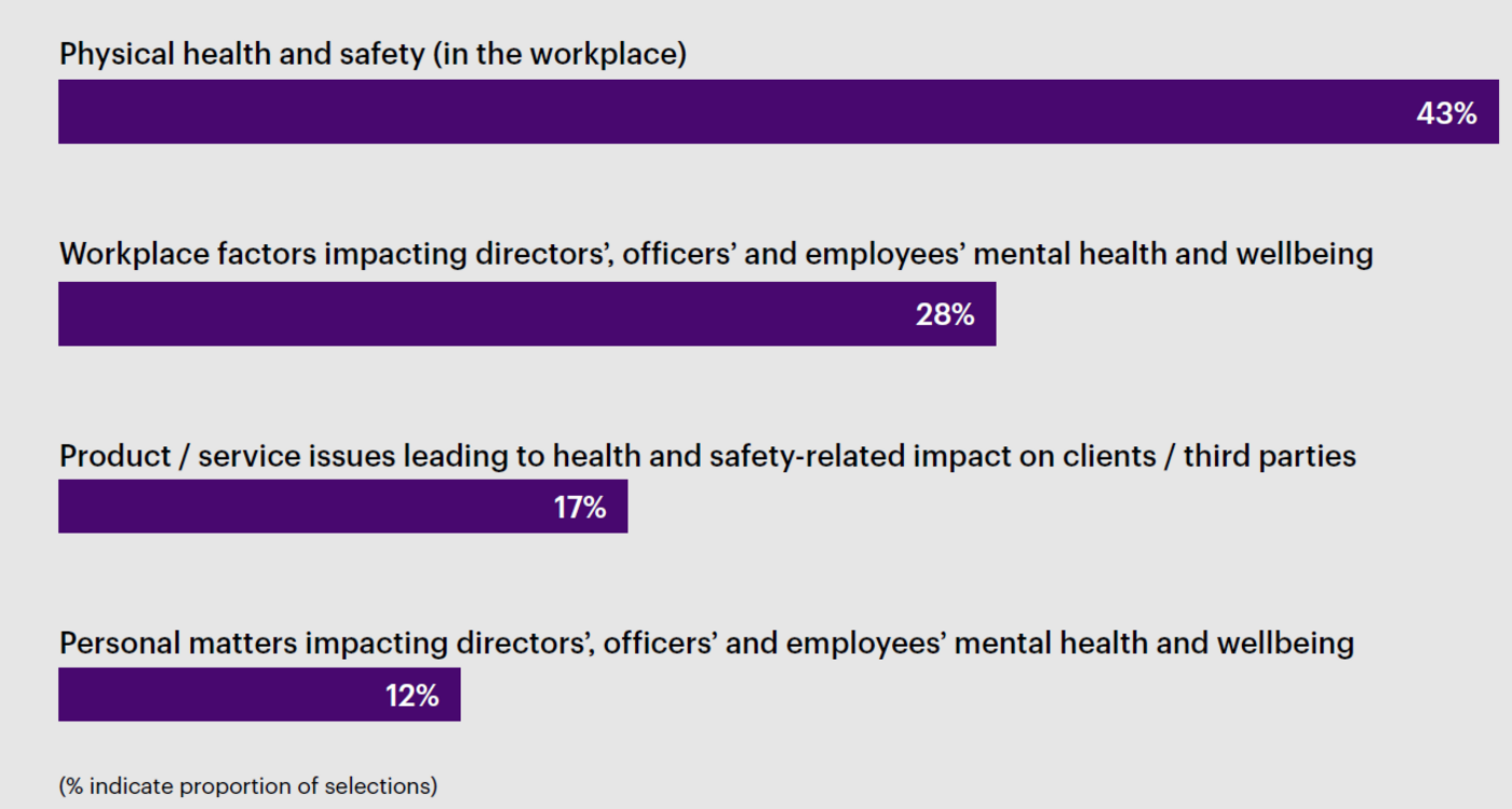 Ein bemerkenswerter Befund: 28 Prozent der Befragten nennen mentale Gesundheit als das zentrale Risiko innerhalb des Themas Gesundheit und Arbeitssicherheit. Damit ist das Thema nicht mehr nur eine HR-Frage, sondern ein direktes Haftungsrisiko für das Top-Management.