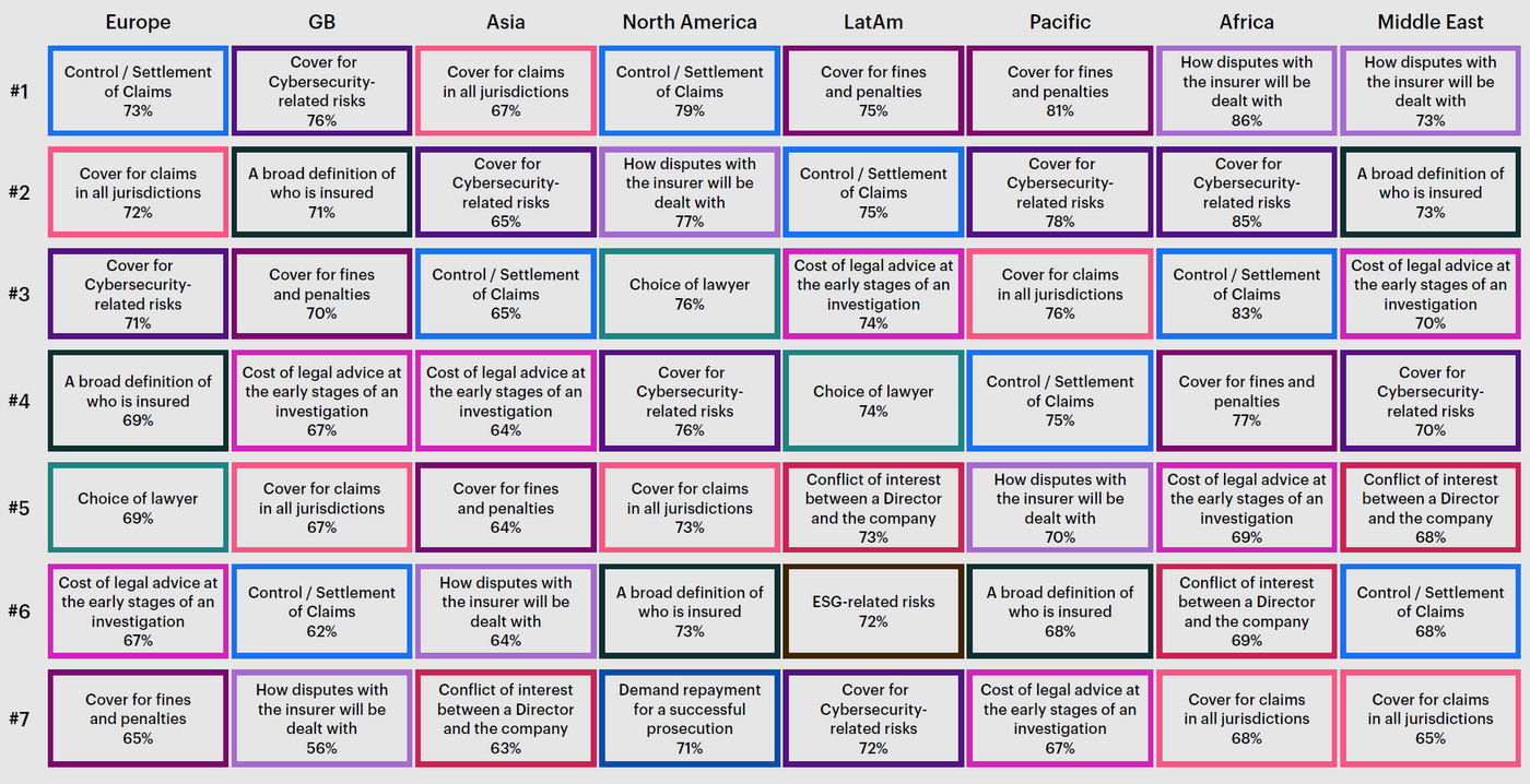 Abb. 05: Prioritäten bei der D&O-Versicherungsdeckung nach Regionen [Quelle: WTW]