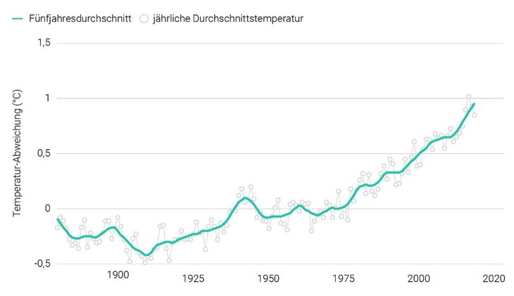 Eine durchaus heterogene Besetzung also. Und trotzdem herrschte auf dem Panel in vielen Punkten Übereinstimmung – was zu der Zeit in der politischen Debatte in den USA anders aussah. Bei einer Regierung, die sich die "Wahrheit" nicht durch Fakten kaputt machen lassen will und die Wissenschaft wie zu Galileos Zeiten in die Nähe von Teufelszeug rückt, überraschte das nicht. Immerhin hatte sich Präsident Trump letztlich dazu durchgerungen, zur Kenntnis zu nehmen, dass eine Globalerwärmung stattfindet. Die Datenlage, auch die Analysen der eigenen Raumfahrtbehörde NASA, war einfach zu erdrückend (siehe nachfolgende Grafik). Skeptischer war Trumps Sicht, wenn es um die Frage geht, ob der Mensch für den Temperaturanstieg verantwortlich ist. Dazu stellte der Präsident nach eingehender Analyse "klar”: "One of the problems that a lot of people like myself, we have very high levels of intelligence but we’re not necessarily such believers."