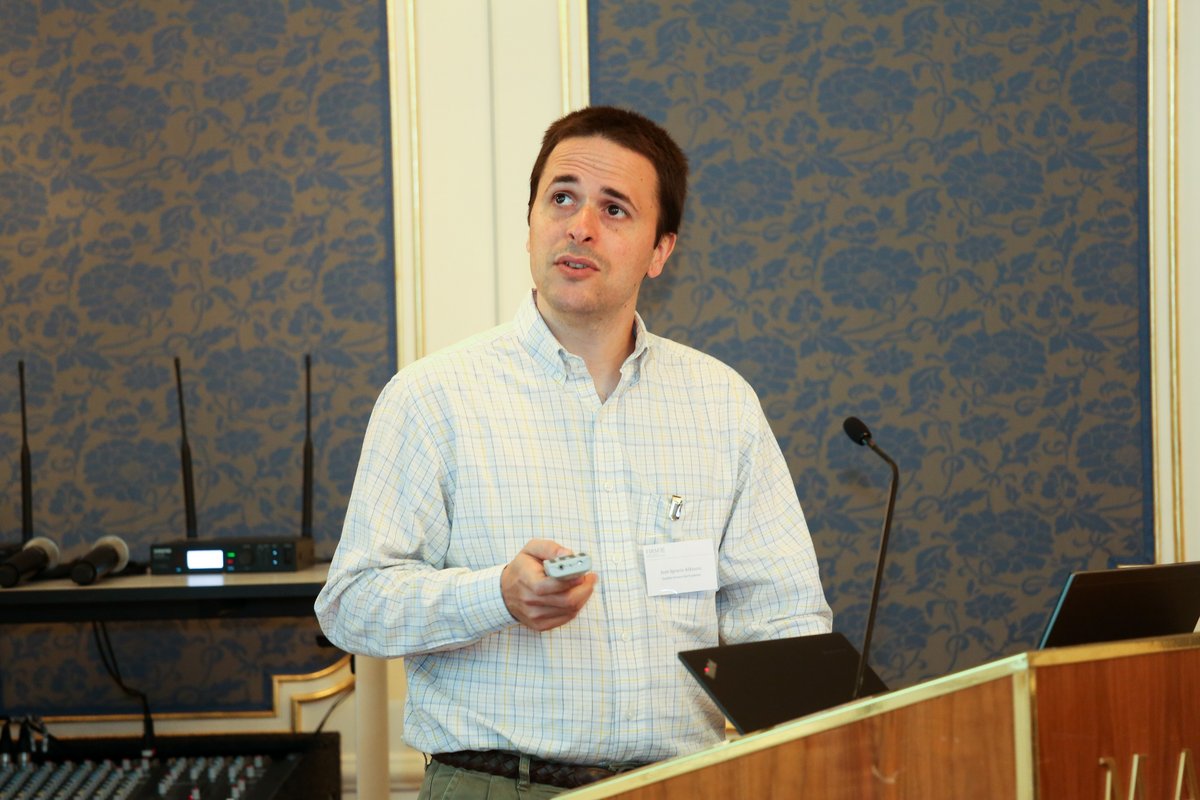 Juan Ignacio Aldasoro, Johann Wolfgang Goethe-Universität Frankfurt, präsentierte in seinem Vortrag ein endogenes Netzwerkmodell für den Interbankenmarkt, in dem risikoaverse Banken sich gegenseitig Kredite vergeben und in liquide als auch illiquide Aktiva investieren. Banken können auf dem Interbankenmarkt als Kreditnehmer und Kreditgeber auftreten. Das Clearing des Interbankenmarkts und des Markts illiquider Aktiva erfolgt durch den Tâtonnement-Prozess.
