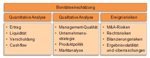 Abbildung 4: Die drei Säulen der fundamentalen Bonitätsanalyse [Quelle: Assenagon]