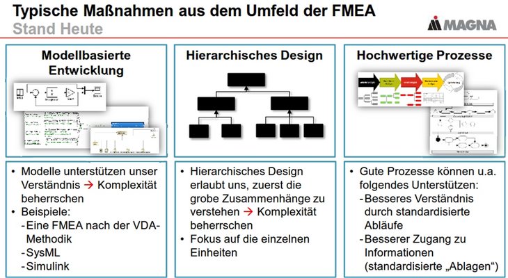 Abb. 02: Typische Maßnahmen aus dem Umfeld der FMEA [Quelle: Magna Powertrain, FMEA konkret, Ausgabe 09/2017, S. 4]