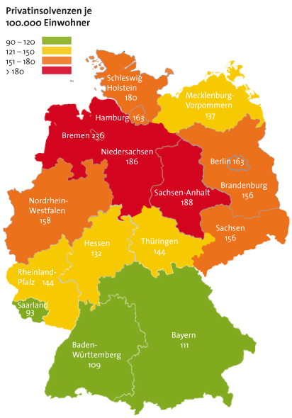 Abb. 1.: Privatinsolvenzen 2008 nach Bundesländern