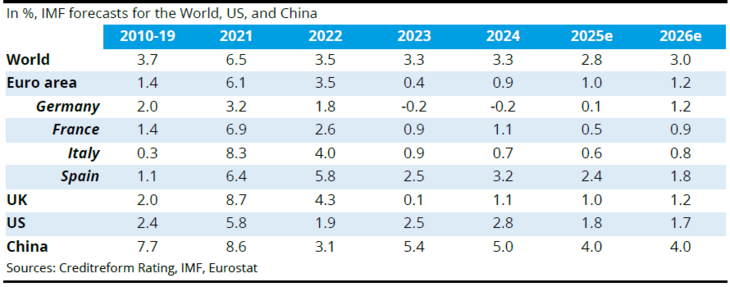Abb. 03: BIP-Wachstumsprognosen des IWF für ausgewählte Länder (2025e/2026e) [Quelle: Creditreform Rating, IMF]