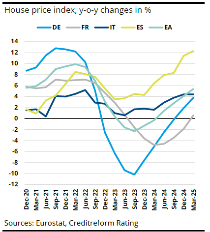 Abb. 04: Jährliche Änderungsraten der Hauspreise in Deutschland und Europa [Quelle: Eurostat, Creditreform Rating]