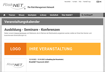 Sie haben die Möglichkeit Ihre Veranstaltung auf dem Portal RiskNET zu präsentieren.